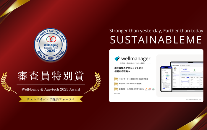 今回、当社が提供する組織マネジメント支援基盤「wellmanager」は、個人・チーム・組織のコンディションデータを統合的に可視化し、経営・マネジメントの意思決定に接続する点、ならびに行動変容まで踏み込んだ運用設計が評価され、審査員特別賞の受賞に至りました。